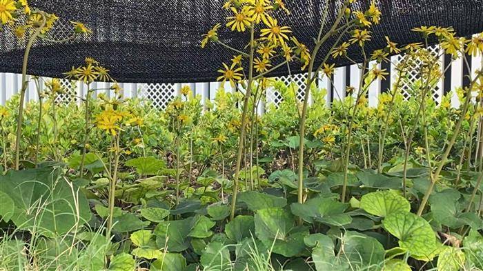 注释:第三句:双关句,表面是指草变黄,暗里嵌入了“吴风草”三个字,大吴风草属于菊科,花朵有点像菊花,但比菊花大,植株高大,生于阴暗的地方。