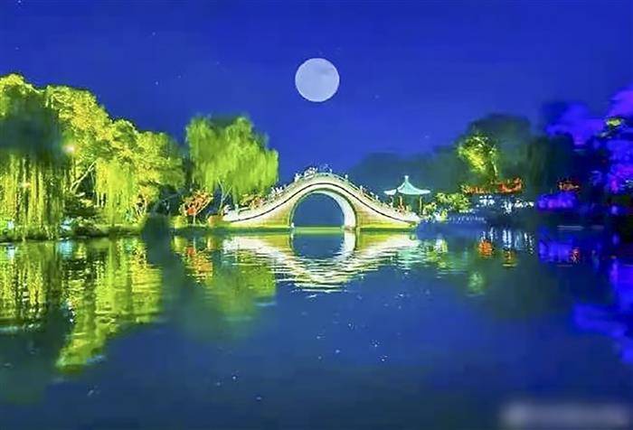 念四桥头悬碧轮,桂风箫韵满庭银。
