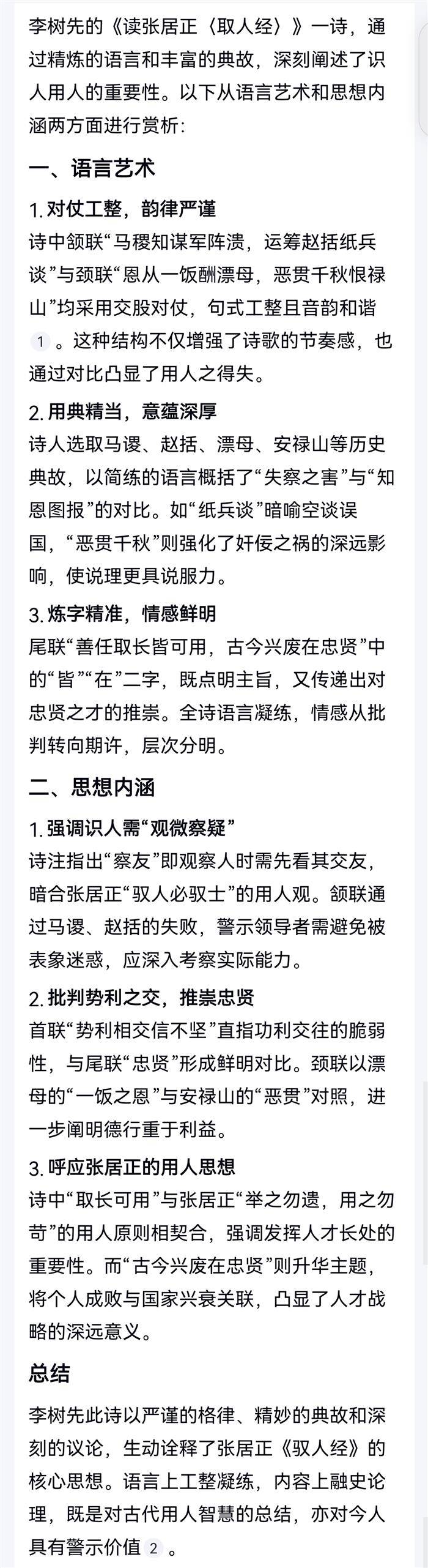 注:察友,指观察人时,先看他的朋友怎么样。信,指诚信。颔联,引古人有失于观人于微,察人于疑故事。交股对仗句。颈联,引小恩养贵人,大恩养仇人故事。
