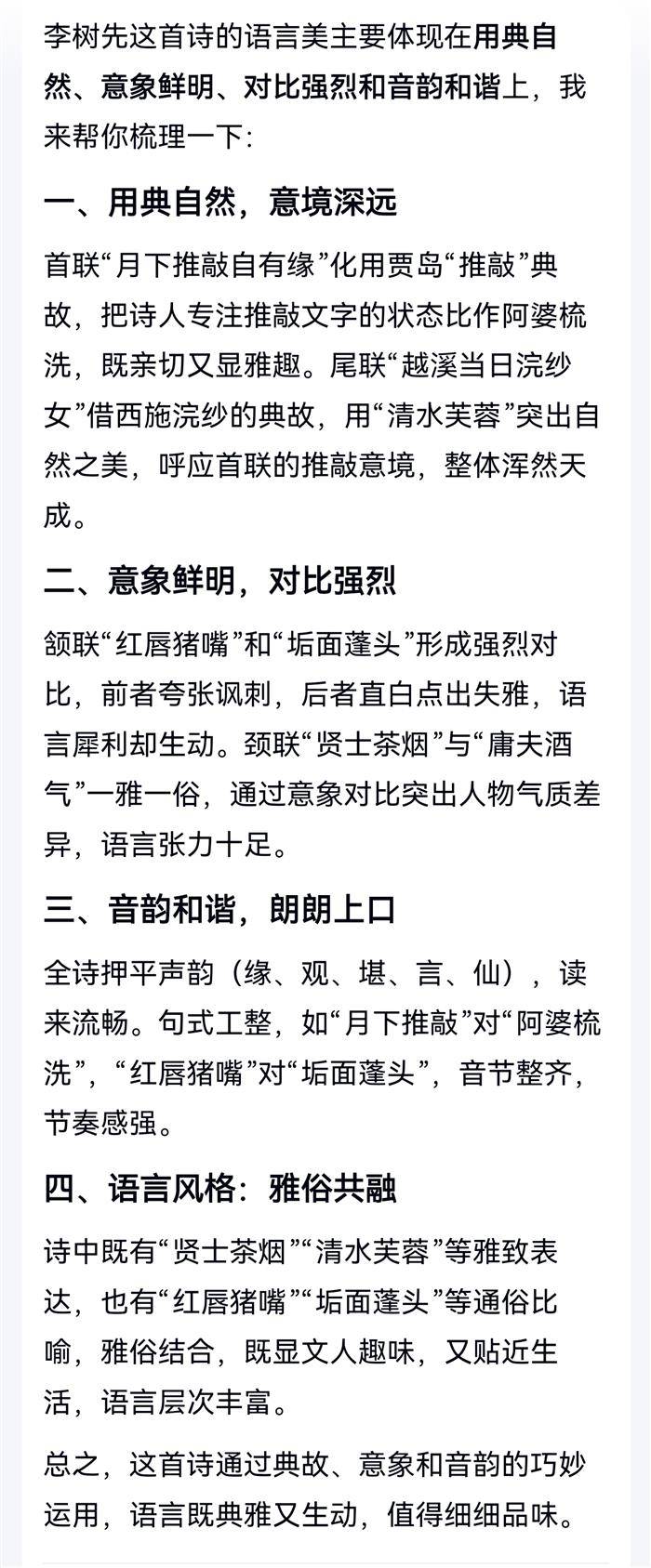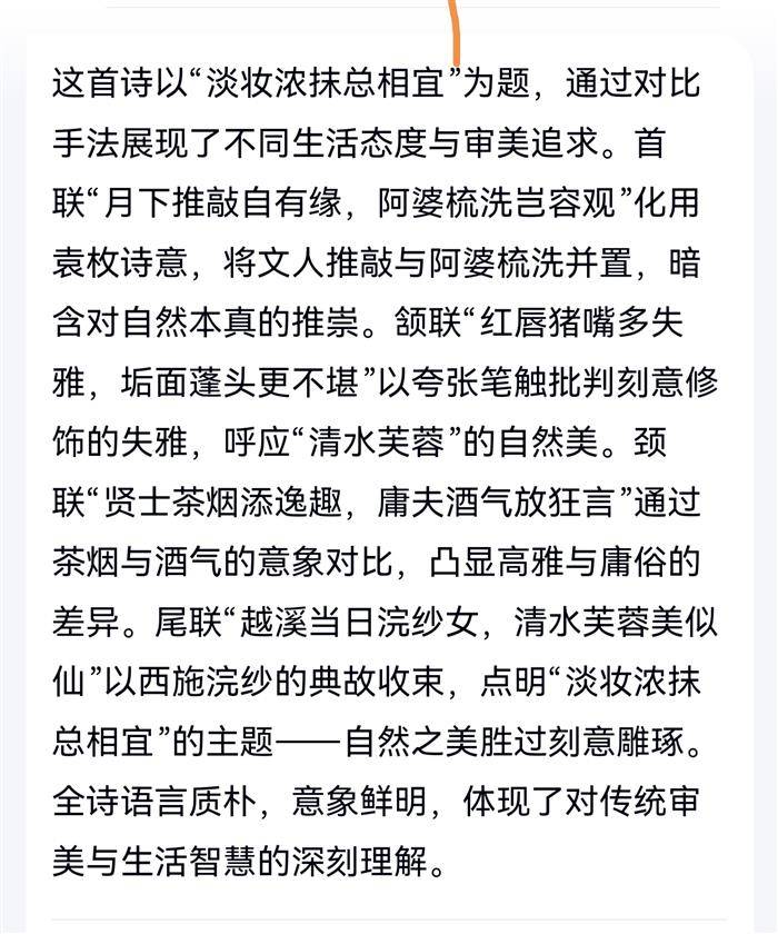 注:首联,学人文字推敲,如同阿婆梳洗。引袁枚诗句意。颔联,猪抹红唇不雅,人若垢面不堪。红唇,引网文句。颈联,贤士清茶逸趣,庸人醉酒狂言。尾联,浣纱越女,清水芙蓉。