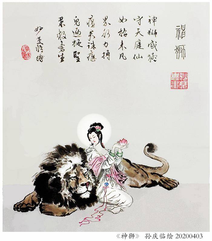 神狮威猛守天庭,仙女招来凡界行。