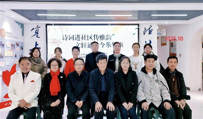 石嘴山市诗词学会诗词进社区活动(赵红梅供稿) 2025年10月22日下午三时,石嘴山市诗词学会开展的“诗词进社区传雅韵 文轩通古今承华章”为主题的诗词进社区活动,取得了圆满成功。 中华诗词独一无二,举世无双。为了传承中华诗词文化,体现诗词对身心滋养,学习先贤的人生智慧,提高社区文化建设,增进邻里团结,石嘴山市诗词学会会员一行10余人,在石市大武口区朝阳街道万盛社区举行了诗词诗歌朗诵才艺展示。朝阳社区工作人员和社区居民共同参加了此次活动。初冬时节天气虽寒冷,大家的参与学习的热情仍然很高涨。 诗词进社区活动得到万盛社区的大力支持和 热情周到的服务。社区主任申玉茹亲临活动现场并组织参与了精彩的节目展演。 市诗词学会刘虎会长,在诗词创作和认识方面造诣颇深,他就当今社会为何要学习古诗词?通过什么方式学习,为什么要传承诗词文化?用通俗易懂的方式,脉络清晰地向大家 阐述了他的观点。 他认为古诗词在当今社会有很高的地位,学习古诗词不仅能陶冶情操,提升生活品味,同时也是人文素养的根基,与先贤对话,感受千年文字的力量。在塑造文化认同与价值观,理解民族精神,建立文化自信方面,传承诗词文化不仅能提高个体修养,更是民族血脉的延续,传承和传播诗词文化,可以向世界展示充满智慧中国形象,具有深远意义。 进行诗词创作,成立诗词社团组织,走进社区学习诗词等方式都是传播诗词文化最好的实践。我们有责任和义务将诗词文化发扬光大。刘虎会长的一席话,使在场人员深受鼓舞和启发。 在才艺展演环节,老师们通过诵读经典《诗词里的中华》《春江花月夜》等名篇,表演戏曲国粹,演唱演奏《梦中的兰花花》《雕花的马鞍》《天边的骆驼》等才艺展示,表达对诗词的喜爱之情,赞美智慧力量的贡献者,表达对幸福生活的执著追求,引起大家一致共鸣。 许东君老师的原创作品《诗歌之源》的演绎,追溯重温3000年前上古歌谣《弹歌》到2000年后一代伟人写下的《浪淘沙—北戴河》,让中华诗词穿越时空发扬光大,许老师对诗词文化的领悟和文采,得到大家的高度赞誉,将活动推上了高潮。 在意犹未尽中活动告一段落,在诗词学习欣赏中提升修养,达到了诗词进社区预期的目的。 今后石嘴山市诗词学会,将采取更多灵活多样的方式,去踏青去追寻,为推动中华诗词灿烂文化,做出自己的努力。 2025.10.23.