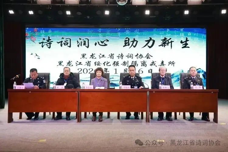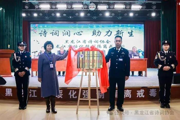 (本会讯)1月16日,黑龙江省诗词协会与绥化强戒所举行共建传统文化教育基地签约揭牌仪式。省诗词协会会长胥春丽,顾问陈修文、程垦以及来自肇东、安达、青冈、绥化市和北林区等地爱心诗人代表18人和绥化强戒所领导、干警和戒毒人员一百余人出席了本次活动。