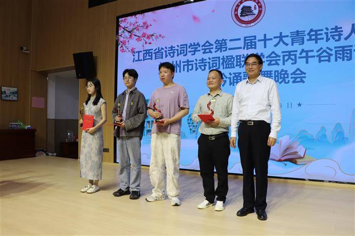 在仪式现场,江西省诗词学会副会长黄志平首先介绍了本次评选工作的组织程序、评审标准、征集情况和评审流程。本次评选体现了公开、公平、公正的原则。随后,正式宣读了获第二届“十大优秀青年诗人”名单,董晓、魏文强、叶显子、胡善兵、肖鹏、唐梦玲、朱雅云、伍思鹏、邹鹏飞、梅自强十位青年才俊光荣入选。省诗词学会会长何建洋为获评的“十大优秀青年诗人”代表颁发了荣誉杯和荣誉证书,勉励青年诗人珍惜荣誉、再接再厉,今后创作出更多有温度、有情怀和有时代特色的优秀诗词作品。