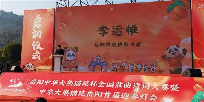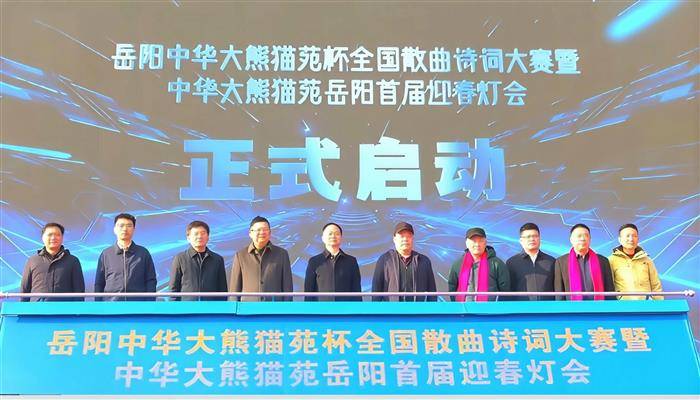 2月8日上午,岳阳龙山花语世界灯火初燃、诗风涌动,岳阳中华大熊猫苑杯全国散曲诗词大赛启动仪式和中华大熊猫苑岳阳首届迎春灯会开园仪式同时隆重举行。中华诗词学会书记、副会长张存寿,中华诗词学会散曲工委主任徐耿华;湖南省委组织部原副部长、中华诗词学会散曲工委顾问、湖南省诗词协会会长蔡建和、潇湘散曲社荣誉社长周成村、社长刘海阳等领导;岳阳市人大常委会副主任王文华、岳阳市政协副主席李运帷、岳阳市委宣传部副部长余友安、岳阳市社科联主席吴灿、岳阳市文旅广电局副局长卢明哲;南湖新区党工委书记王智勇、岳阳市南湖新区党工委副书记、管委会主任姜其胜; 华瀚集团董事长蔡诗章、华瀚集团总经理罗晓文、华瀚文娱总经理郑兆彬、华瀚集团副总、湖南华瀚九州文化旅游有限公司董事长总经理杨保磊等领导出席并讲话。岳阳市元曲研究会全体班子成员、各县市区诗词散曲协会,市直分会会长、秘书长及诗词文旅界人士齐聚一堂,共启这场集古典诗韵、国宝风采、非遗灯艺于一体的新春文旅盛会。