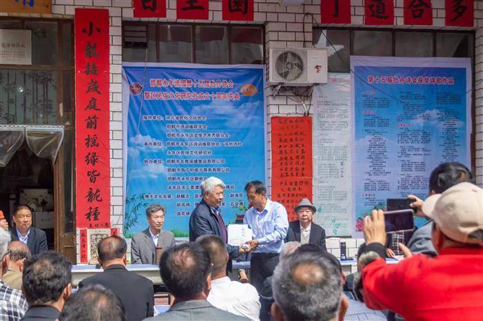 永年区文联主席常炳革致欢迎词,省民俗文化副会长谢维良、李治山、邯郸诗词诗词楹联学会副主席张东杰、王瑾分别代表协会致贺词,宣读永年区民俗文化十年突出贡献者名单、纪念散文“最佳奖”和优秀奖名单,牡丹诗歌大赛获奖名单、现场诗会拈韵活动规则。河北省协会副会长、石家庄诗词学会会长韩存锁向永年区诗词楹联协会会长赠送了《柏坡风》诗刊。邯郸市诗词楹联学会副主席李现考主持活动,洺城老干部文艺表演团敬献了歌舞。