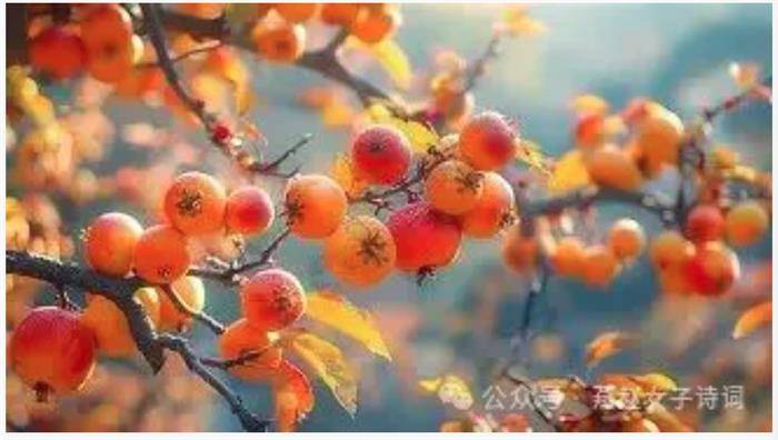 稻浪浮金千顷,晒场堆玉三竿。垂垂红柿压檐弯,风送新醅香漫。