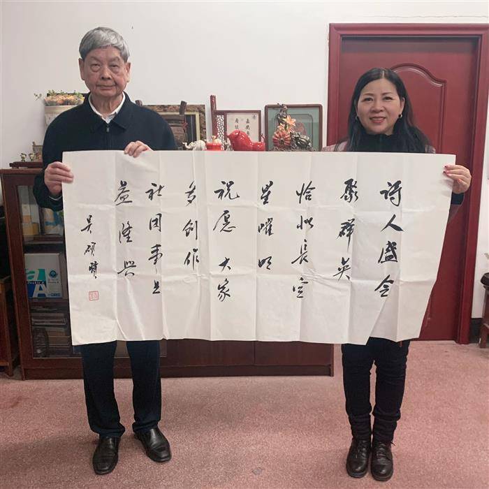 2026年2月3日下午,广东中华诗词学会副会长周燕婷、副会长高旭红、秘书长祁丽岩一行专程赴华南理工大学民国建筑红楼,拜访学会顾问、中国科学院院士吴硕贤。学会领导代表广东中华诗词学会向吴硕贤院士致以诚挚的问候,双方围坐畅谈,就诗词创作发展等进行交流。吴硕贤院士不仅是建筑技术科学领域的权威,亦深耕诗词创作与书法艺术多年,文理兼修,卓然有成。座谈中,他结合自身跨界经验,阐述了诗词在陶冶性情、启迪思维、传承文化方面的重要价值,并对学会工作及《当代诗词》刊物的建设提出了宝贵建议。随后,吴院士将其父亲吴秋山的著作《功夫茶考》、自己创作的《偶吟集》以及整理其父亲吴秋山的著作《秋山诗文集》等赠予学会,并将精心创作的书法作品赠予广东中华诗词学会及学会会刊《当代诗词》,笔墨遒劲,文辞雅致,承载着他对诗词事业的支持与鼓励。