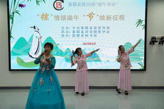 欣逢盛世,吟诗诵赋,载歌载舞,欢聚一堂。随后举行富顺县第39届端午诗会,由舒昌勇、舒千林两位老师主持。会长樊小华致辞,端午诗会拉开序幕。“粽”情颂端午,“节”续新征程,各位诗友激情满怀,神采飞扬,他们用充满深情的吟诵,用优美的歌声,用翩翩的舞姿,用精湛的太极表演,以及韵味十足的京腔川剧等等丰富多彩的形式,表达对党和祖国的赞美,对幸福生活的讴歌,对美好未来的畅想。表演者饱含深情,观众听得津津有味,会场不时响起阵阵热烈的掌声与叫好声,为即将到来的端午佳节增添和谐的诗意氛围。