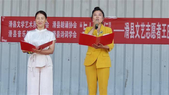 在第二个“中国文艺志愿者服务日”到来之际,2025年5月24日,由滑县文学艺术界联合会、滑县音乐舞蹈家协会、滑县朗诵协会、滑县诗词学会主办的“与人民同行”新时代文明实践文艺志愿服务活动——走进王庄镇郭草滩村文艺演出成功举行,县文联主席高长智,滑县王庄镇副镇长管世晓,县音乐舞蹈家协会、县朗诵协会主席李忠民,县诗词学会会长苏宪权参加。高长智致辞。