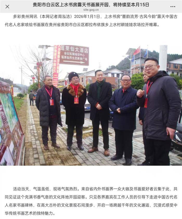1月1日(丙午),国务院发展办原主任景亭湖组联,林城都拉营乡上水村,上水书房300方露天书画展,开园开展活动,会员云月影等,实时参加,详见该“专辑”。