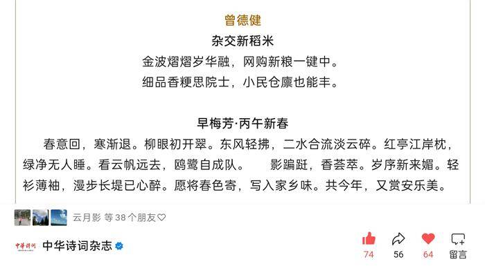 至乃宴启中庭,欢盈四壁。耆老争相呼电话,垂髫竟直打语音。抖音舞破璇霄月,快手摄留阆苑芳。尤见昔饴糖黏灶王唇,今九宫炫朋友圈。巫祝傩腔化摇滚,宗祠烛影变霓虹。