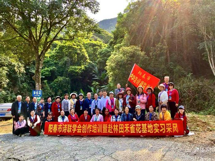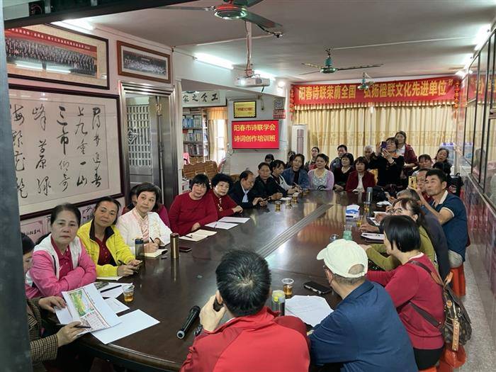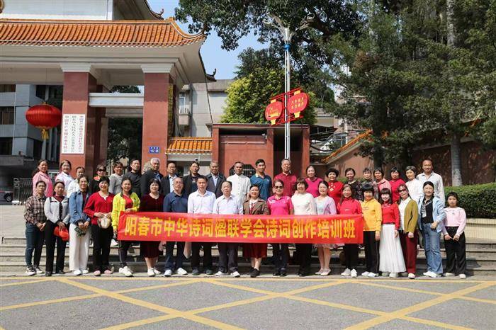 3 月 23 日下午,阳春市中华诗词楹联学会成功举办了一场别开生面的诗词创作培训班,并组织学员前往春城林田村禾雀花基地开展实习采风活动,吸引了40余名诗友踊跃参与。广东楹联学会会长助理、阳春市文联副主席、阳春市诗联学会会长的李文广出席并作动员讲话。