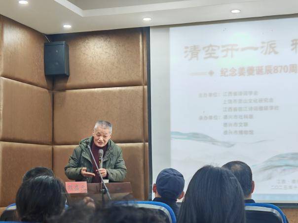 下午的诗词讲座及吟诵会由德兴市政府副市长黄训华主持。德兴市委常委、宣传部部长单文彬致欢迎辞。随后,江西省矿冶博物馆负责人蒋忠林作了《姜夔籍贯新考》的专题报告。备受瞩目的专题讲座由著名诗人、省诗词学会顾问熊盛元先生主讲,他以《白石词声韵管窥》为题,深入剖析了姜夔词作的声律之美与艺术特色,展现了南宋雅词的独特风貌。