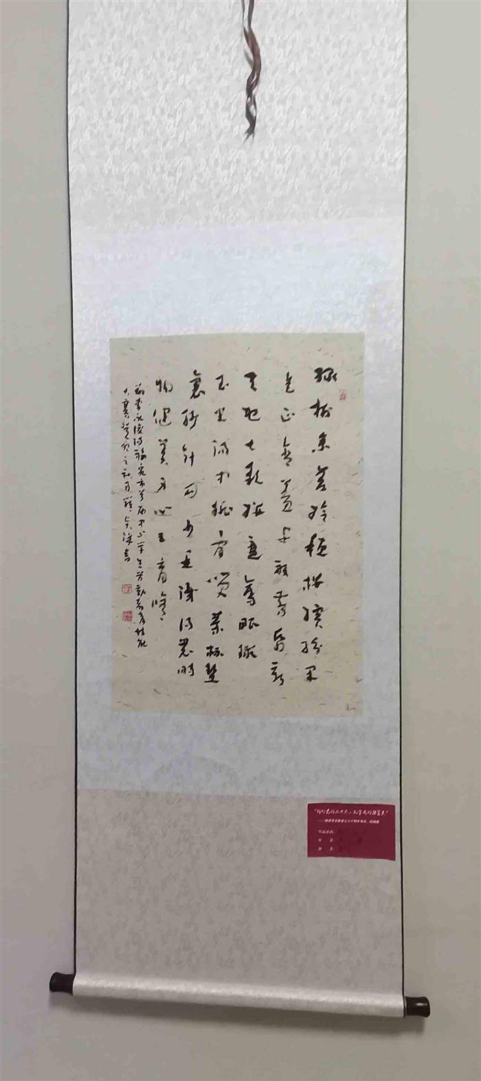 他也爱好书法艺术,1985年参加贵州省内第一个乡镇级书法团体一一牛场镇书法协会,退休后的2011年又与同好组建牛场镇书画协会,并被推举为主要负责人之一。2019年加入福泉市书法协会成为会员。