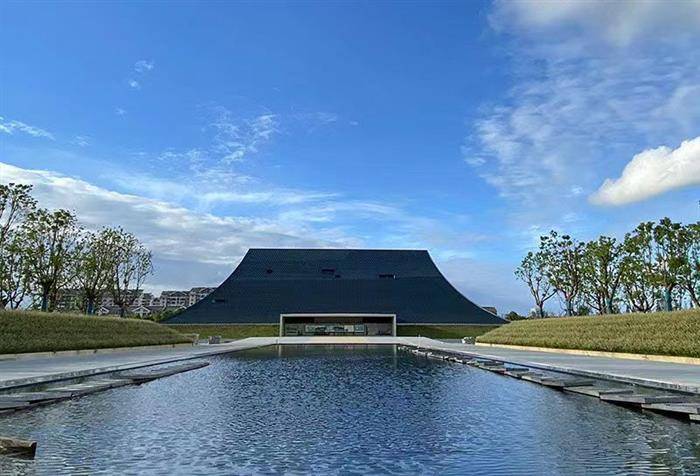 即将建成开放的扬州隋炀帝陵遗址公园的中轴线广场,建有一镜鉴池,主体建筑陵墓倒映其中,取以史为鉴之意。