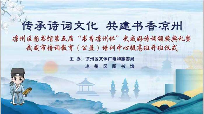 3月9日,第五届“书香凉州杯”武威好诗词颁奖典礼在凉州区图书馆举行。本次活动由凉州区文体广电和旅游局联合学会等单位共同举办,共收到760件作品,经评审,《春忙》《咏武威》等86件佳作获奖。典礼现场,声情并茂的诗词朗诵引人入胜。活动同时启动了“武威市诗词教育(公益)培训中心提高班”,旨在通过系统培训,为本土诗词文化传承发展培养核心力量。