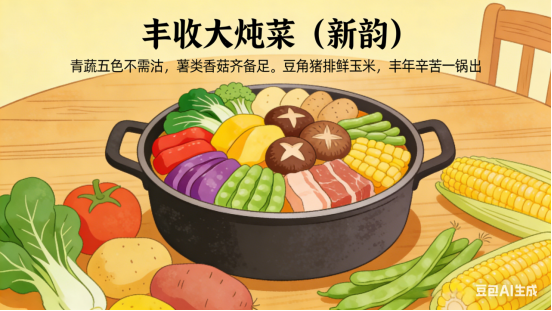 豆角猪排鲜玉米,丰年辛苦一锅出。