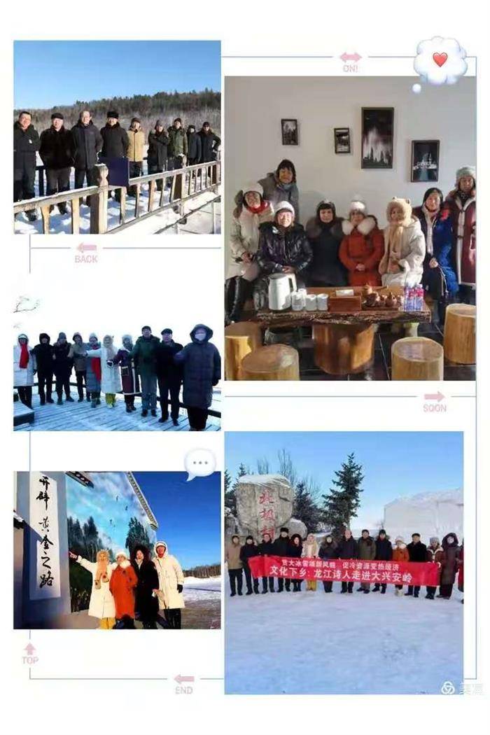 在别具特色的隐庐居、在见证历史的303工段的工棚里、在森朴落游客中心、龙河驿站、前哨林场的康养民宿、漠河国营美食一条街、前哨学院、大凌河挚爱城堡……诗人们切身感受到了大兴安林业人经济转型前后思想的深刻变革和欣欣向荣的业态发展;在邻近图强最北点的阵阵雪雾里,诗人们齐声喊着号子推车,一路笑声。来兴安一定要找到北,在龙江第一湾、北极岛、萨布素景区以及“中国爱情坐标点”景区,诗人们重拾童趣,躺卧于雪中拍照,领略兴安大冰雪的无穷魅力。