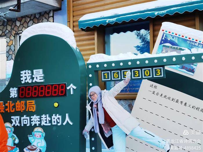 在极寒的北极村,诗人们与南方“小土豆”一道,挤在最北的邮局里买来几袋红豆果干,品味“北国红豆也相思”的意韵;或者挑选几个冰箱帖等文旅产品,还有的选择从中国最北的邮局给自己的亲人朋友邮寄一张带有北极村风光的明信片。