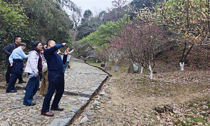 2月5日,调研团一行走进梅关古道,探访珠矶古巷,欣赏自然美景,吟咏驿路梅花,感受古今沧桑,寻根广府文化。