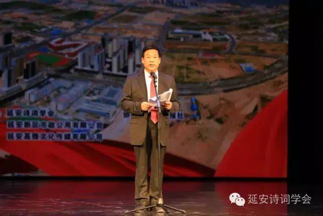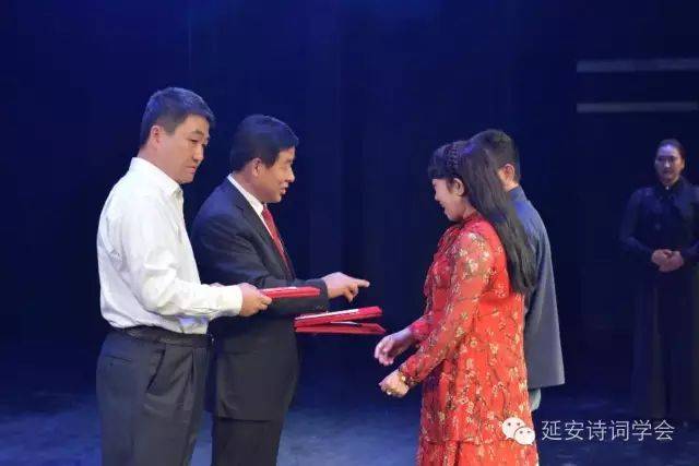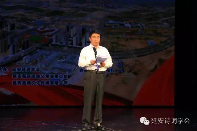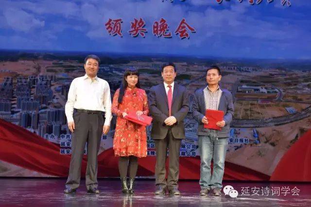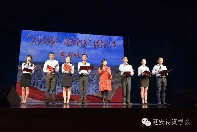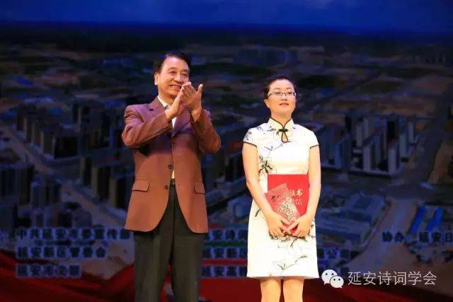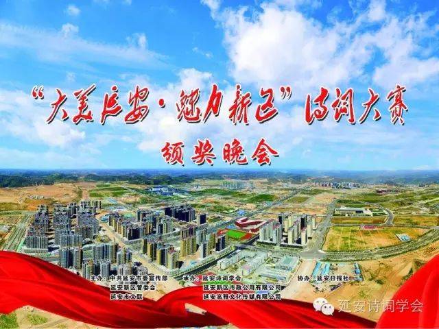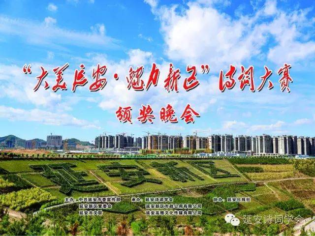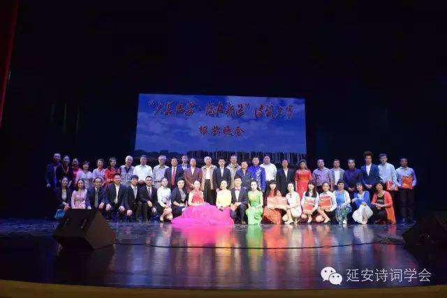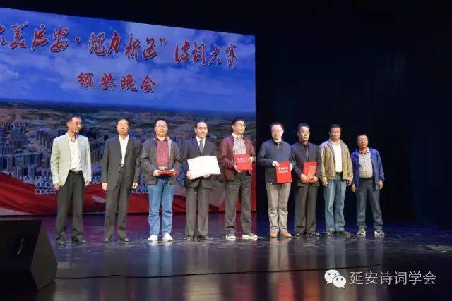 为迎接第十一届中国艺术节,弘扬延安精神、展示延安新区建设成就、激励诗词创作,进一步激发延安人民的自豪感和建设热情,2016年9月13日晚,由市委宣传部、新区管委会、市文联主办,延安诗词学会、延安新区市政公用有限公司、延安高雅文化传媒有限公司承办,延安日报社协办的“大美延安·魅力新区”诗词大赛颁奖晚会在延安大剧院隆重举行。陕西省诗词学会会长孟建国,市人大常委会原主任郝飚,延安诗词学会会长苏世华,新区党工委委员、开发公司董事长徐志荣,新区管委会副主任李锦刚为获奖作者颁奖。陕西省诗词学会荣誉会长郝树茂、陕西省老年诗词学会会长李广利及陕西省诗词学会采风团的诗人等出席了晚会。