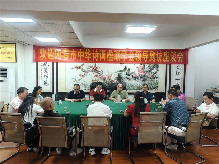5月18日,阳春市文联副主席、市诗联学会会长李文广率班子成员一行7人赴广州拜访广东楹联学会,汇报工作并探讨发展路径,获省联会热情接待。中国楹联学会顾委会副主任、广东楹联学会顾委会主任邹继海,中国楹联学会顾问、广东楹联学会会长曾建国,广东楹联学会驻会副会长左万青,会长助理兼秘书长陈腾杰,会长助理邓伟林,办公室主任陈京霞等领导出席座谈会。