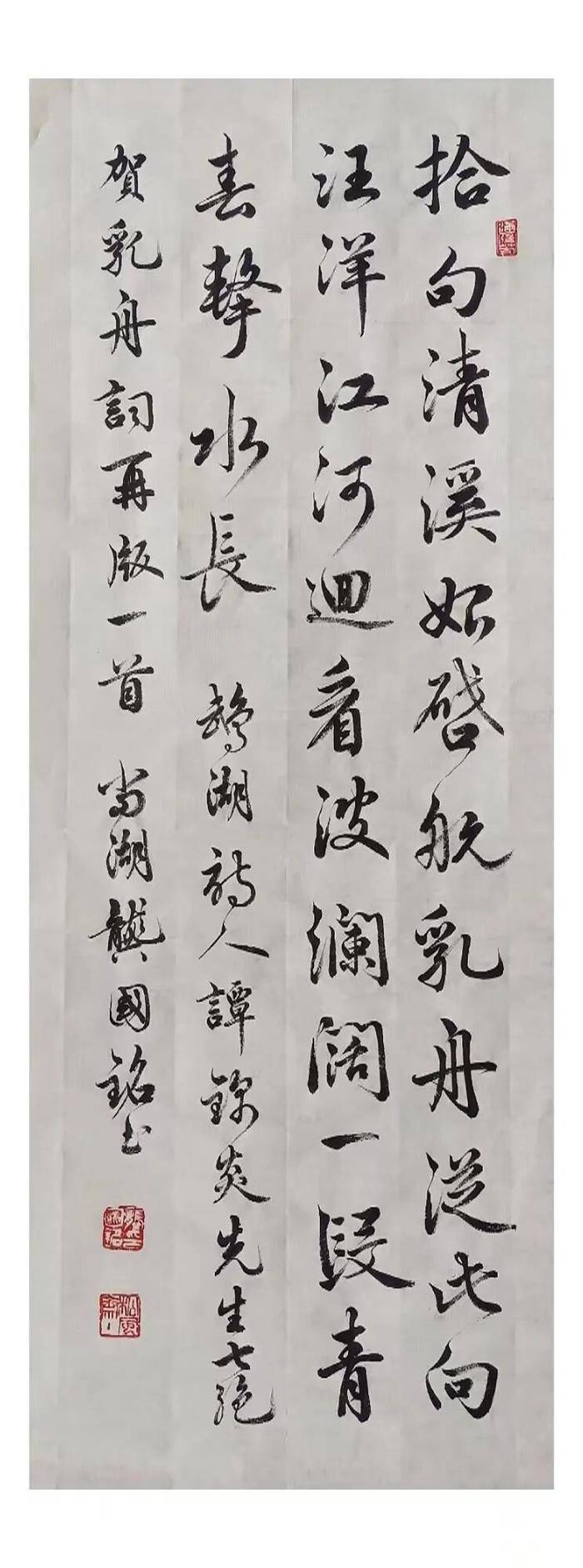 鸣汽笛,绘航图。水乡帆举续征途。风雨不改初心色,笑傲山河锦绣铺。