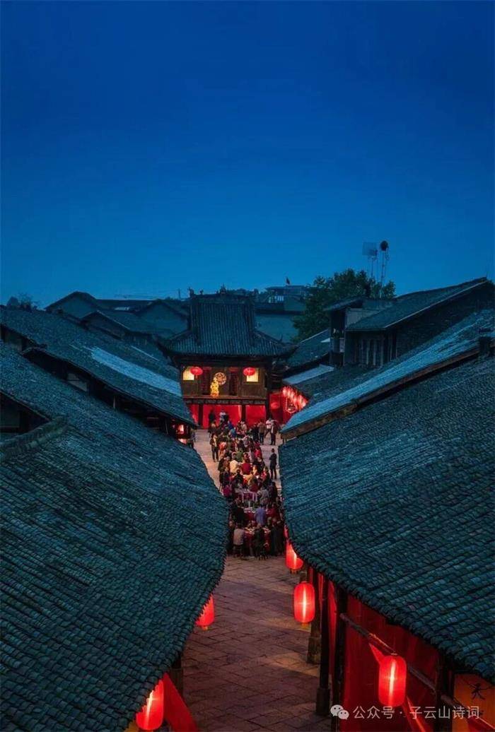 在犍为诗人的笔下,罗城古镇非寻常古镇——它是泊于山脊的方舟,是汇聚信仰的殿堂,是茶酒氤氲的江湖,更是灯舞不息的星河。没有刻意雕琢的辞藻,没有故弄玄虚的意境,唯有赤诚的笔墨,凭借平仄相间的韵律,便将四百年风雨酿成了酒,将千里乡愁熬成了药,将日常烟火点成了灯——尽数凝注在诗词楹联间,让这座“山顶一只船”的古镇,有了可感、可触、可吟咏的灵魂。