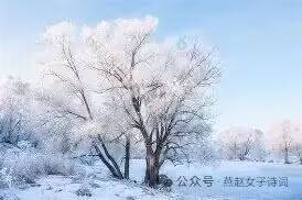 琼花舞,飞絮飘。山峦耸秀披琼俏,野田装素银光罩,妪婦铲雪儿童笑。黄莺绕树唱声欢,雀儿落地喳喳叫。
