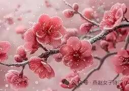 一夜苍枝挂满纱,冰晶亲吻韧红花。