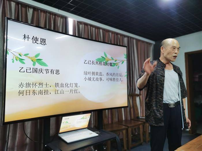 华诞欣逢金桂香,诗坛老友聚欢堂。