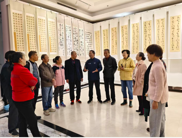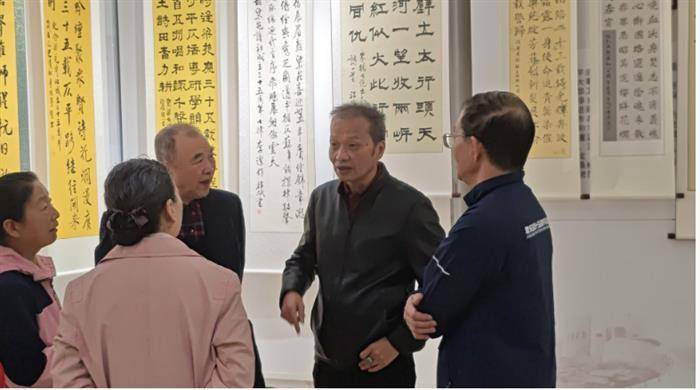 开今化古,笔酣墨畅。赞群贤,妙品琳琅。风骚独领,意气高昂。正情同炽,艺同展,帜同扬!