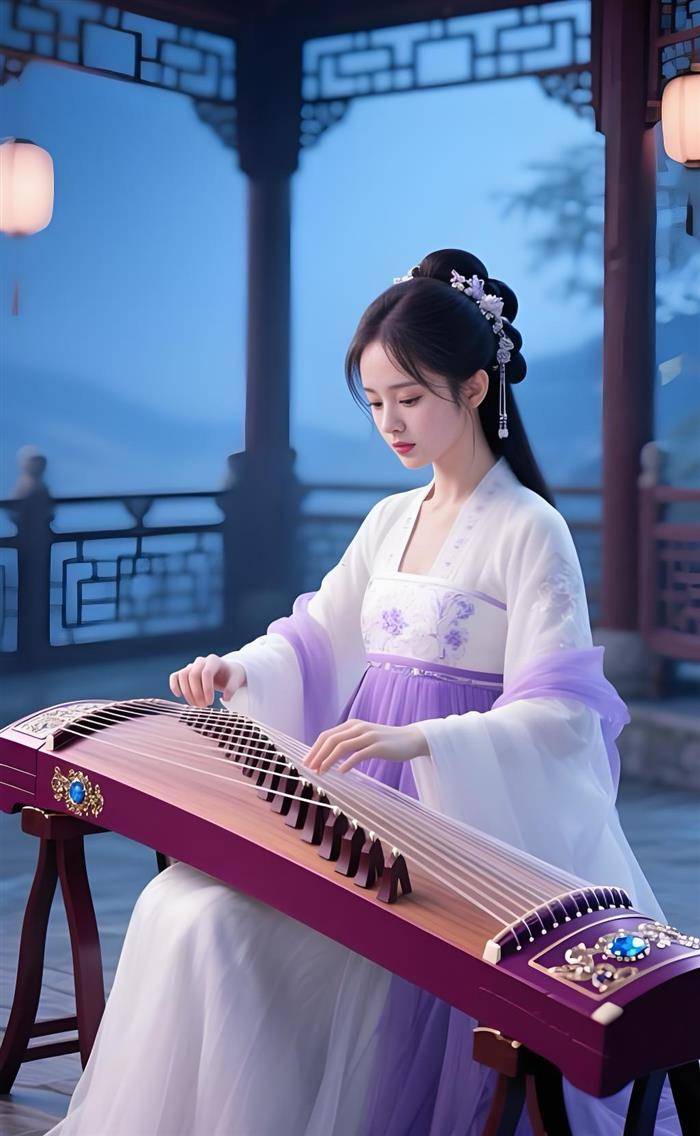 月下抚琴,秋风窥破佳人意;