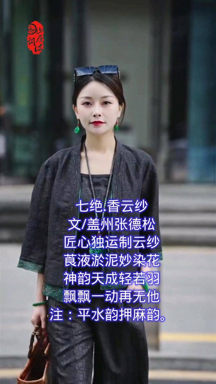 香云纱又名薯莨纱、莨花纱、云纱等。由于穿着走路时会发出“沙沙”响,因此最初叫“响云纱”,后来谐音叫作“香云纱”。它制造的特点是经线以绞纱组织织成带有几何行小提花的白胚纱,然后用纯天然的薯莨植物的汁水浸染桑蚕丝织物,再用富含多种矿物质的河涌淤泥覆盖,经日晒加工而成的一种昂贵的纱绸制品。 这种纱料简约大气,色彩渐变衔接,柔和自然,清透却不漏色,朴质且优雅,是女人最喜爱的高档服装面料。