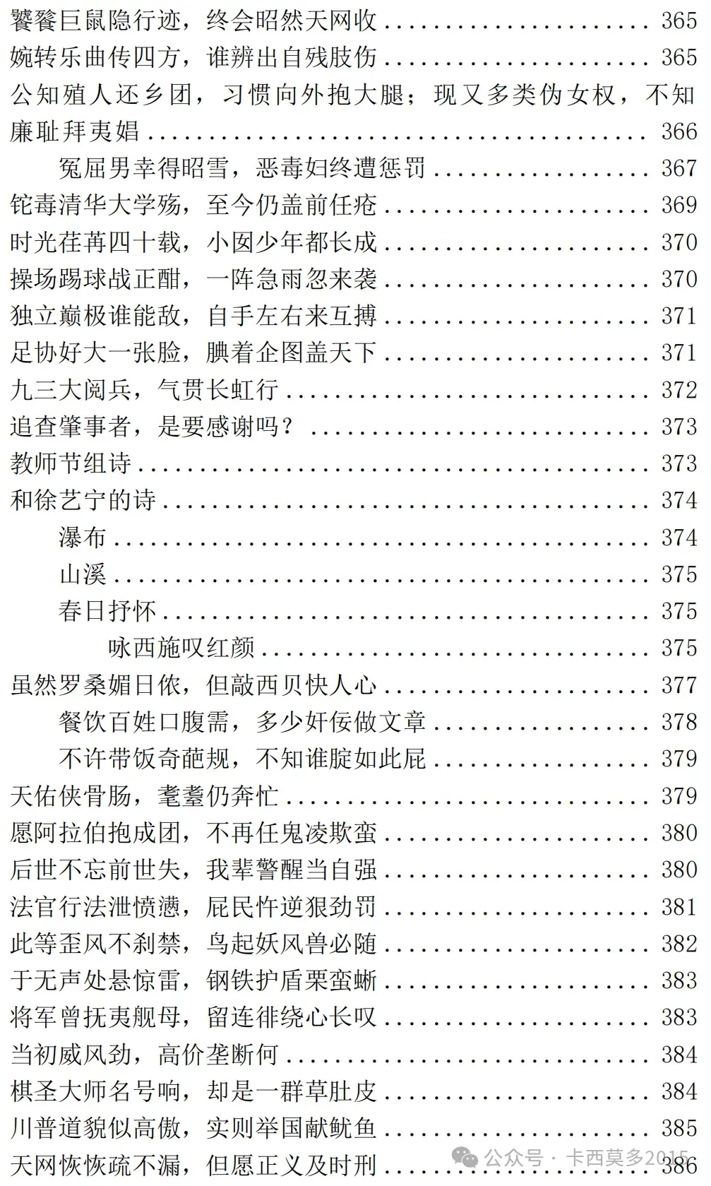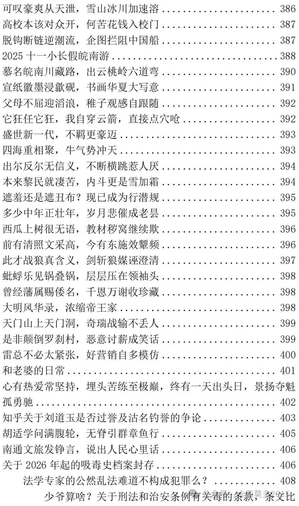 2026年了,2025年除了上面的专版增补,还因为看到很多时事引发评论写了很多杂诗文,本不想整理,不过想想这些事早晚跑不脱,几年后积攒更多再整理会是更痛苦的事,每年趁假期分摊整理出来反而会好些,也算是每年度回忆总结自己曾经一年的过往。这些杂诗文多是随手敲,只为表达自己对一些事的看法,没多斟酌谈不上精致,和以上专版里的质量没法比,权且自己生活的记录。 不混迹诗人圈,不过和goofegg在一些论坛上互动频繁,有时他看到我的诗文会引用并引发他的诗文,我也经常会引用他的,有时候谈到同一件事时,会全文引用在此集子里。比如对司马南、吃瓜蒙主等事件的评论等等,在未名空间看到的佚名作者讨伐吃瓜蒙主系列的诗作非常欣赏,为他整理和修改了很多,也一并加进来。 2026年1月1日 https://lup9304.github.io/content.html?id=54