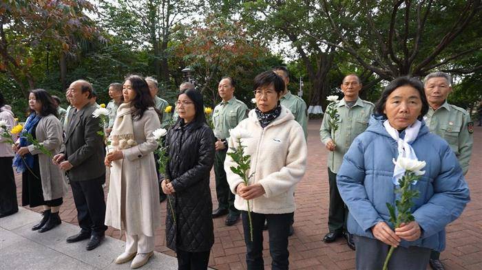 仪式简洁而庄重。没有冗长致辞,唯有深深的三鞠躬,以及依次敬献的黄白菊花。素雅的花朵在碑前静静绽放,成为肃穆景致中一道凝重而明亮的色彩。凝视着碑上镌刻的四十六个名字,在场者无不心生敬重与感慨——他们曾是一个个鲜活的生命,而今化作碑文,长存于这片土地。