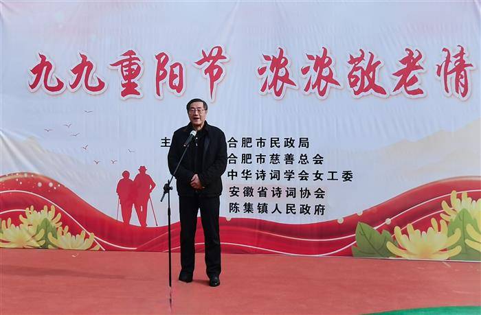 活动中,陈集镇党组书记贾海波首先致欢迎词。吴兰卿、叶如强分别作了热情洋溢、满含祝福的讲话。吴兰卿主任讲道:“老吾老以及人之老”,这是《孟子》里的名句,更是中华民族的传统美德。“莫道桑榆晚,为霞尚满天”,不仅描绘了老人们美好幸福的晚年生活,也寄托了我们对长者的祝福和敬意。此次捐赠,是中华诗词学会女工委与合肥慈善总会共同努力的结果,我们希望通过这次活动让爱心传递得更远更久,温暖更多老人的心。