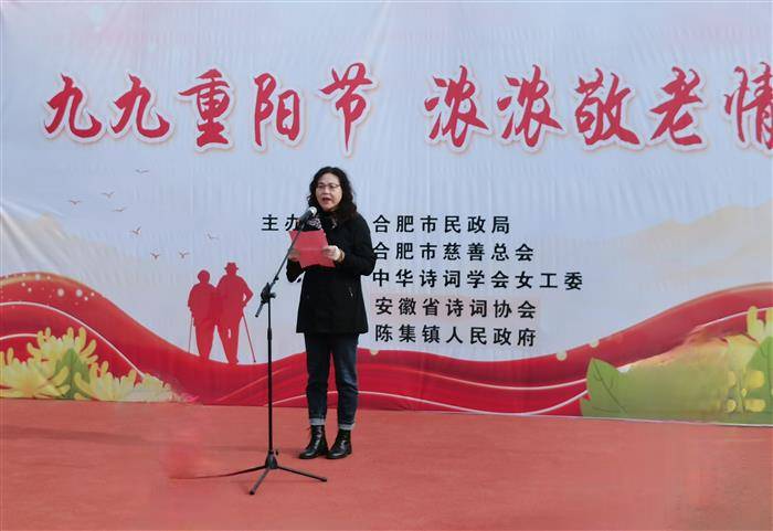 秋高气爽,菊灿桂香。在传统佳节重阳节来临之际,为弘扬中华民族尊老、敬老、爱老、助老的传统美德,10月27日下午,由中华诗词学会女子工作委员会主办,安徽省诗协女子工作委员会承办,合肥天一生物大力支持的“九九重阳节,浓浓敬老情”公益敬老活动,在安徽省合肥市陈集镇敬老中心举办。