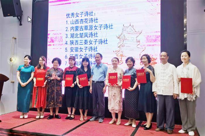 此次活动按照中华诗词学会关于开展诗词精品创作年活动的相关要求,经全国各省女工委推荐,中华诗词学会女工委按照六条标准进行严格评审,最终评选出全国首批优秀诗社8家(山西杏花诗社、内蒙古草原女子诗社、湖北楚凤诗社、陕西三秦女子诗社、安徽女子诗社、江西女子诗社、湖南湘女诗苑、黑龙江女子诗社)、2023年度优秀女子诗词微刊13家(中华诗词学会女子诗词工作委员会微刊、山西杏花诗社的《杏花诗社》微刊、内蒙古草原女子诗社的《草原女子诗笺》微刊、湖北楚凤诗社的《楚凤诗社》微刊、陕西三秦女子诗社的《三秦女子诗笺》微刊、安徽女子诗社的《清音雅集》微刊、江西女子诗社的《西江一片月》微刊、湖南湘女诗苑的《湘女诗苑》微刊、河南女子诗社的《嘤鸣诗词》微刊、河北诗词协会女工委的《燕赵女子诗词》微刊、贵州遵义市绥阳女子诗社的《绥阳女诗人部落》微刊、江苏淮安市三味女子诗社的《江苏女子诗词》微刊、湖北黄冈市知否才女诗社的《知否才女》微刊)、女子诗词组织新星奖4家(安徽省八皖女子诗社、南充市青年诗词学会女子分会、宁夏女子诗社、云南省诗词学会女子诗词部),各级领导分别为获奖单位进行了颁奖。安徽省诗词协会女子工委会、安徽省诗词协会女工委微刊《清音雅集》位列其中,受到表彰。