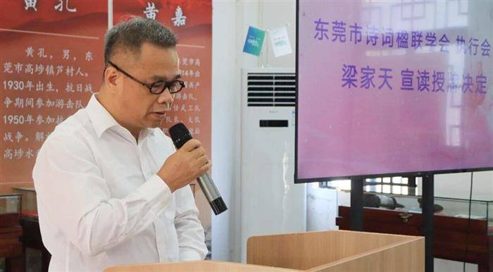 东莞市诗词楹联学会执行会长梁家天宣读了授牌决定。