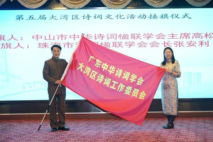 随后举行的接旗仪式上,中山市中华诗词楹联学会会长高松将活动会旗移交珠海市诗词楹联学会张安利,宣告下一届大湾区诗词文化活动将由珠海承办。