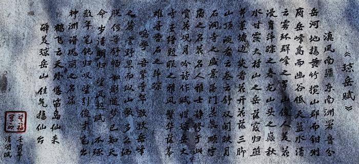 滇凤南疆,东南洲署;音分岳河,地接黄竹。揽山郡而钳州府;岳峰高而幽谷低。天蓝水清,云雾环群峰之翠;山俊人美,花漫育萍踪之春。龙山头之巅,秋水甘露;大村山之岳,落霞归燕。芹菜塘边,笑看花开花落;三脚山顶,淡看云卷云舒。双阁映月,石洞寺之盛景;蒲门茶蕊,顺宁府之名花;名人雅士,静修于此;赏花观月,呤诗作赋。惜琼岳大寺,王缙题联之雅风;繁华落幕,难寻香石之萍踪。呜呼!吾辈童年,放牧岳峰之麓;尝野果而纵山歌,多么洒脱,何等舒畅。如影随梦,已知天命;岁清明归,望风起赋;不琢数年,笔钝归叹;望引俊才,笔出神洲,谱瑰丽之名篇: