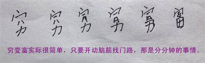 注释:穷与富这两个字,外貌看来差别很大,你要把穷汉变成富翁?只要开动脑筋,找准门路,把这些残缺、短板补上,那也是非常简单的事情。如果用在现实生活中,亦是如此!穷则思变嘛?在穷困艰难的时候,就要想办法改变自己,改变现状,不能破罐子破摔。