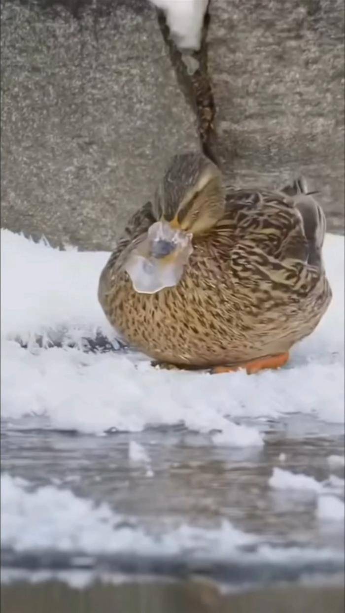 北方冬日太冷了,鸭喙都被冰冻住了!我们只知道““春江水暖鸭先知”啊!