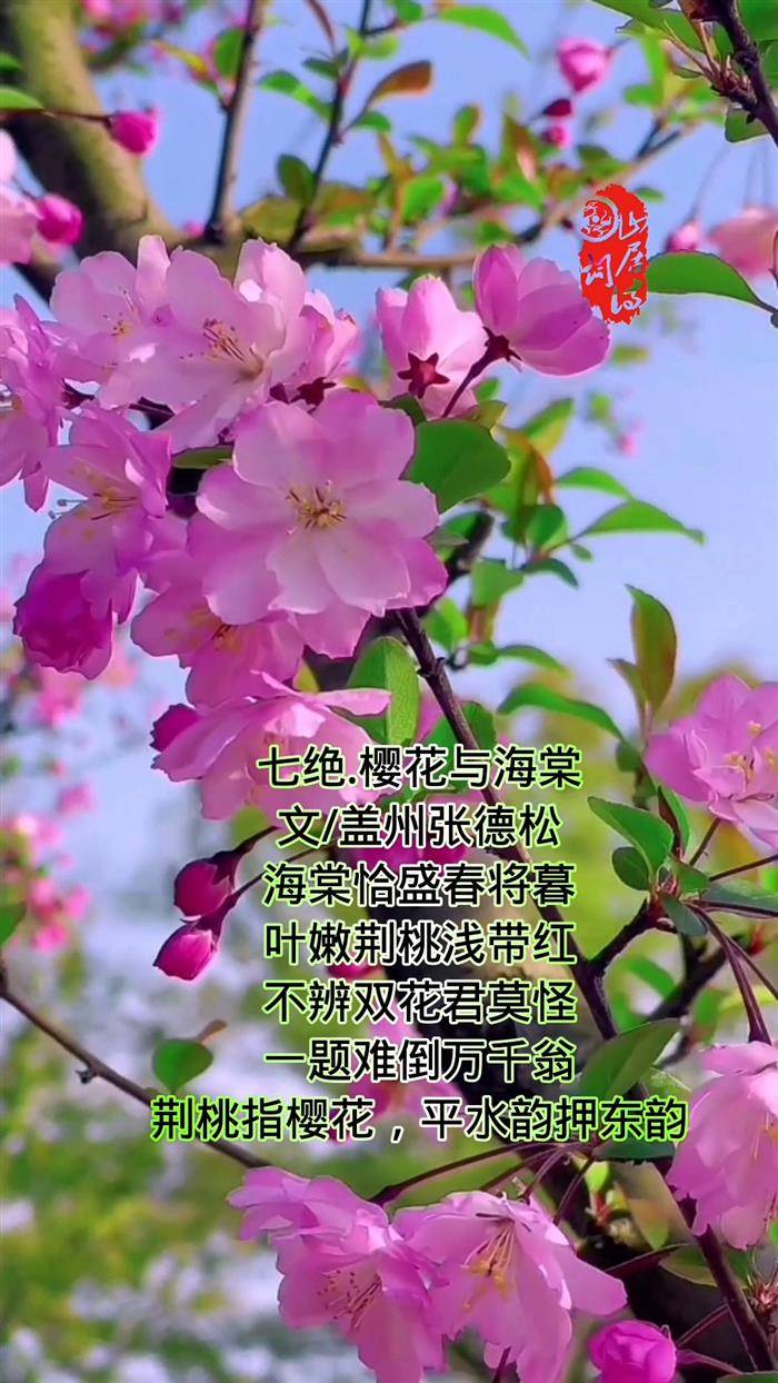 海棠恰盛春将暮,叶嫩荆桃浅带红。