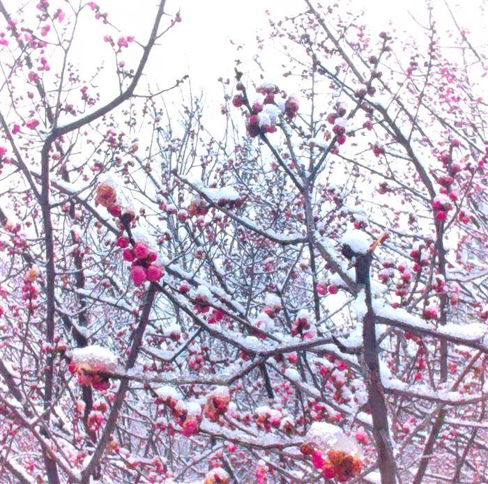 白絮通宵轻柔扬,梅园遥望白茫茫。