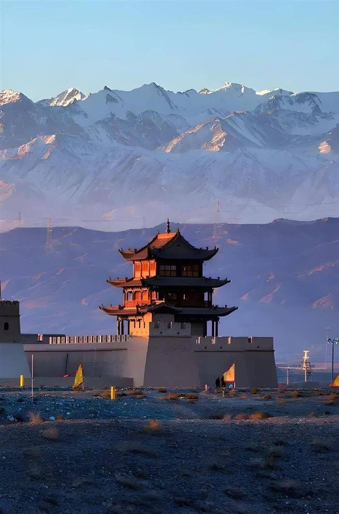残垣岁月深雕,隘吞胡马萧萧,笛彻长龙破晓。