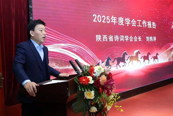 刘炜评作题为《把握时代脉搏,推动陕西诗词事业创新发展》的工作报告,从“强化思想引领,把牢正确方向”“聚焦主责主业,繁荣诗词创作”“打造工作亮点,彰显发展成果”“上下同心力,展现新风貌”四个方面总结了学会2025年度工作,并对学会2026年工作提出明确要求:一是做好党建工作,把牢政治方向与文化导向,坚守文艺为人民服务、为时代抒写的初心使命,确保诗词事业健康发展;二是创新创作活动形式与载体,深入实施诗词精品工程,鼓励推出更多彰显时代气象、富于陕西特色的优秀作品;三是扎实推进诗教普及与人才培养,完善培训机制,壮大创作队伍,发现、培育一批有潜力、有活力的诗词新人;四是强化宣传平台建设,拓展传播渠道,全方位提升陕西诗词的知名度、影响力与社会认知度;五是聚焦全省发展大局,推动诗词创作与经济社会发展同频共振,以诗词力量助力陕西中国式现代化建设实践;六是着力打造特色品牌,持续做好“长安诗人”风采展示、三秦女子诗社建设、《陕西诗词》和《长安诗论》提质、培训中心增效、中华诗词“长安大讲堂”举办等重点工作,塑造更为鲜明的文化标识。他表示,陕西省诗词学会将紧扣时代主题,团结引领各级诗词组织及广大爱好者,坚持以人民为中心的创作导向,牢记责任,勇担使命,扎实推进各项事业发展,为传承弘扬中华优秀传统文化、繁荣发展社会主义文艺事业贡献更大力量。
